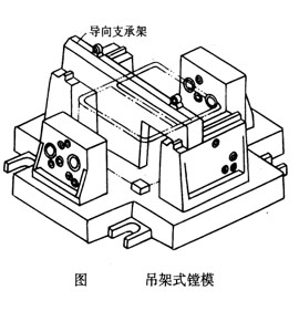 但是在加工箱體內(nèi)部間壁上的孔時(shí),由于開口朝上,因此為提高刀具系統(tǒng)剛度而設(shè)置的中間導(dǎo)向支承吊架只能懸掛在夾具上面,如圖所示,