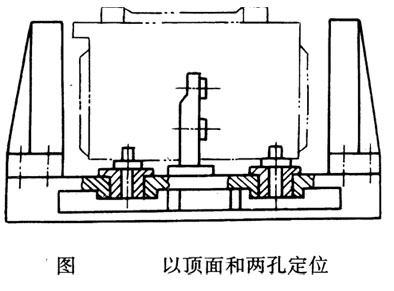 由于懸掛的支面吊架剛度較差,又有安裝誤差。因此影響加工精度的的高,此外操作麻煩,所需輔助時(shí)間長(zhǎng),這對(duì)大批大量生產(chǎn)業(yè)說不合適的。選擇頂面R和它上面的兩個(gè)銷孱為定位基準(zhǔn)采用這種定位方式安裝是地,主軸箱箱口朝下,如圖所示
