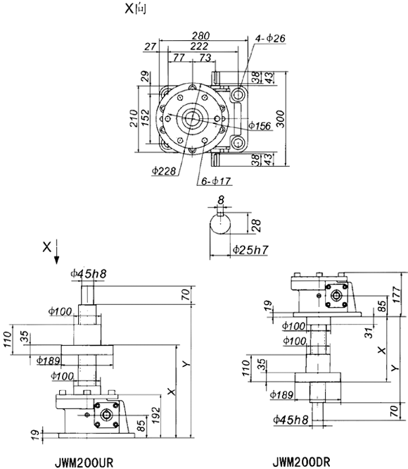 | 當前位置:減速機首頁 >> 產(chǎn)品大全 >> 升降機 >> JW螺旋升降機 >> JWM200絲杠升降機外形尺寸表 |