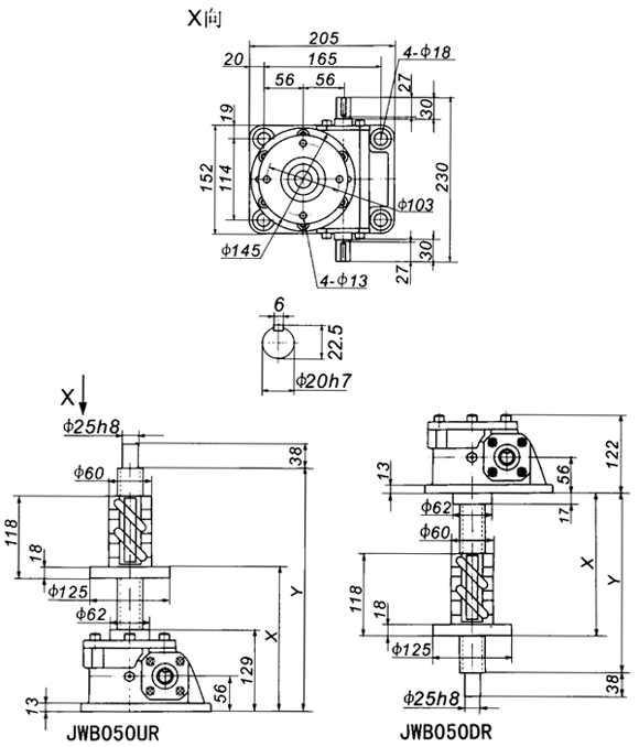 | 當(dāng)前位置:減速機(jī)首頁(yè) >> 產(chǎn)品大全 >> 升降機(jī) >> JW螺旋升降機(jī) >> JWB050絲杠升降機(jī)外形尺寸表 |
