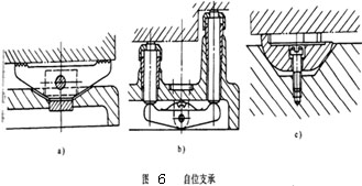 (3) 自位支承(浮動支承) 在工件定位過程中,能自動調(diào)整位置的支承稱為自位支承。圖6所示為夾具中常風(fēng)的幾種自位支承。其中圖a、b是兩點(diǎn)為式自位支承,圖c為三點(diǎn)式自痊支承。這類支承的工作特點(diǎn)是:支承點(diǎn)的位置航測隨著工件定位基面的不同而自動調(diào)節(jié),定位基面壓下其中一點(diǎn),其余點(diǎn)便上升,甚至各點(diǎn)都與工件接觸。接觸點(diǎn)數(shù)的增加,提高了工件裝夾風(fēng)度和穩(wěn)定性,但其作用仍相當(dāng)于一個固定支承。接觸點(diǎn)數(shù)的增加,提高了工件的裝夾剛度和穩(wěn)定性,但其作用仍相當(dāng)于一個固定支承,只限制工件一個自由度。