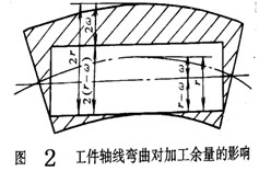 如果本工序有裝夾誤差,包括定位誤差、夾緊變形誤差、夾具本身誤差等,使工件在加工時(shí)位置發(fā)生偏移,本工序加工余量應(yīng)考慮這些誤差 影響。如圖3所示用三爪自動定心卡盤夾持工件外圓加工孔時(shí),若工件軸心線偏移機(jī)床主軸回轉(zhuǎn)軸線一個e值,贊成內(nèi)孔切削余量不均勻,為使上工序的各項(xiàng)誤差和缺陷在本工序切除,應(yīng)將孔的加工余量加大2e。