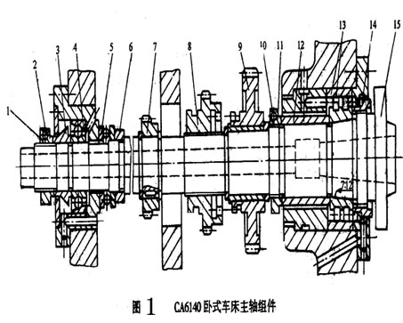 CA6140型臥式車床的主軸是一個(gè)空心階梯軸,其內(nèi)孔用于通過梆料或穿入鋼棒卸下頂尖,或通過氣動、液壓或電氣夾緊裝置的管道 、導(dǎo)經(jīng)。主軸前端的莫氏6號錐孔用于安裝前項(xiàng)尖或心軸,利用錐面配合的摩擦力直接帶動頂尖或心軸轉(zhuǎn)動。