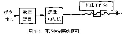 1)開環(huán)控制數(shù)控機(jī)床,在開環(huán)控制中,機(jī)床沒有檢測反饋裝置(見圖7-3),數(shù)控裝置發(fā)出信號(hào)的流程是單向的,它對(duì)機(jī)床移動(dòng)部件的實(shí)際位置不作檢驗(yàn),加工精度主要取決于伺服系統(tǒng)的性能。這種機(jī)床工作比較穩(wěn)定,反映迅速。調(diào)試方便,維修簡單,但其控制精度受到限制。