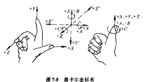 標(biāo)準(zhǔn)的坐標(biāo)系采用右手直角笛卡爾坐標(biāo)系(圖7-8)。