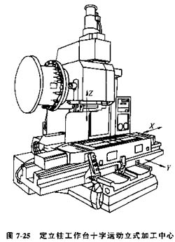 1) 十字工作臺型(圖7-25)布局與單柱立式坐標(biāo)鏜床或十字工作臺型數(shù)控立式鉆床類似,適應(yīng)于高度尺寸較小的蓋板類零件多工序加工。