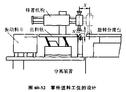 圖60-52為典型的裝配件送料工位設(shè)計(jì),包括: