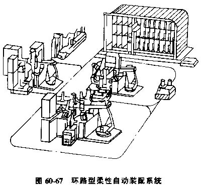 環(huán)路型柔性自動裝配系統(tǒng),一種環(huán)路型柔性自動裝配系統(tǒng)的基本特點是結構不取決于特定的裝配順序。圖60-67為具有此特點的一個可裝配各種型號 的柔性裝配系統(tǒng)。該系統(tǒng)由三個子系統(tǒng)組成;可編程序裝配單元、系統(tǒng)存貯倉庫、柔性傳動系統(tǒng)。除這些子系統(tǒng)外,在裝配系統(tǒng)中還可加入特種功能的專門站,如檢驗站、清洗站和壓床等。