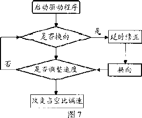 死區(qū)時(shí)間的問題,只有在正轉(zhuǎn)變?yōu)榉崔D(zhuǎn)的時(shí)候才存在,而在正轉(zhuǎn)啟動或反轉(zhuǎn)啟動的時(shí)候并沒有,因此不需要修正。如果開關(guān)管的開通和關(guān)斷時(shí)間非常小,或者在硬件電路中增加延時(shí)環(huán)節(jié),都可以降低開關(guān)管的損耗和發(fā)熱。當(dāng)然,通過軟件避免直通短路是最好的辦法,它的操作簡單,控制靈活。通過軟件實(shí)現(xiàn)死區(qū)時(shí)間,就是在突然換向的時(shí)候,插入一個(gè)延時(shí)的環(huán)節(jié),待開關(guān)管關(guān)斷之后,再開通應(yīng)該開通的開關(guān)管。圖7為利用軟件修正死區(qū)時(shí)間的流程圖,在開關(guān)管每次換向的時(shí)候,不立即進(jìn)行方向的切換,而是先使開關(guān)管關(guān)斷一段時(shí)間,使其完全關(guān)斷后再換向打開另外的開關(guān)管。這個(gè)關(guān)斷時(shí)間由單片機(jī)軟件延時(shí)實(shí)現(xiàn)。