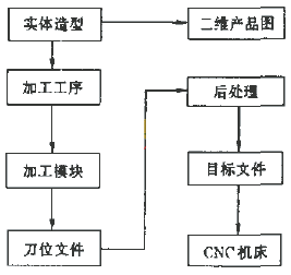 加工工序設(shè)計(jì)完成后,加工模塊根據(jù)需要加工的內(nèi)容安排加工路線,并按設(shè)計(jì)的工序進(jìn)行仿真加工;確定加工工序正確無(wú)誤后,即可生成加工該刀具的刀位文件;然后選擇所用機(jī)床的后處理程序?qū)Φ段晃募M(jìn)行后處理,生成機(jī)床加工用的目標(biāo)文件(G代碼文件);最后還需對(duì)該文件進(jìn)行編輯,去掉仿真過程中一些不必要的語(yǔ)句,生成最終的加工程序。