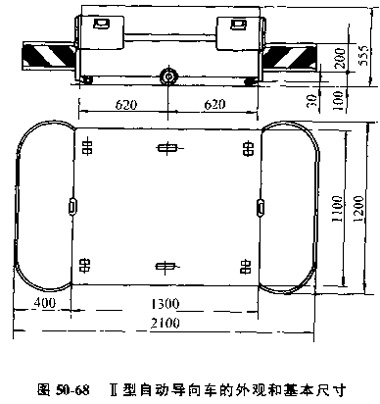 目前應(yīng)用較多的是Ⅱ型自動(dòng)導(dǎo)向車(chē)圖50-68所示是這種小車(chē)的外觀(guān)和基本尺寸。