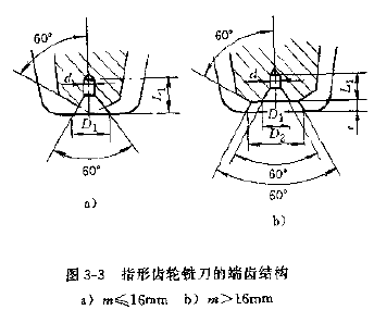 表3-46 指形齒輪銑刀端齒部分尺寸