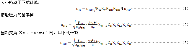 ——接觸應(yīng)力,根據(jù)齒輪的幾何尺寸,制造精度,輪緣、軸承和軸承座的剛性,傳遞的轉(zhuǎn)矩,用接觸應(yīng)力公式(見6.2.1)進(jìn)行計(jì)算。