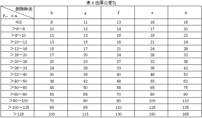 7.3評定齒輪傳動側(cè)隙的指標是 和TS。具體數(shù)值分別見表5、表6。