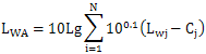式中:Lwj——第j個(gè)頻帶聲功率級(jí)。