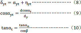 砧的尺寸應(yīng)選擇得使其在齒槽中大致在分度圓的位置接觸齒面,棱柱的半角δyt可以用下面的近似方法來確定,此處δyt、ayt和ηyt為在測量圓上接觸的各角(見圖8)。