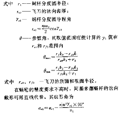當(dāng)阿基米德蝸桿的導(dǎo)程角yz1=≤5°時,則飛刀的前刃面可安裝在刀桿的軸向截面內(nèi),其飛刀的齒形為直線,齒形角等于蝸桿的軸向齒形角。如果蝸桿的導(dǎo)程角較大,為了改善飛刀兩側(cè)切削刃的工作條件,可采用阿基米德法向飛刀,其齒形應(yīng)是阿基米德蝸桿的法向截形相同的曲線。