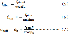 平均法向基圓齒距偏差fpbm,平均基圓直徑偏差fdbm、平均壓力角偏差fαm和有效基圓直徑dbeff有以下關系: