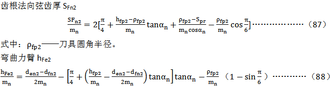 hFe——對(duì)外齒輪用式(86),對(duì)內(nèi)齒輪用式(88)。