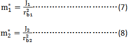 m1*,m2*——小輪及大輪轉(zhuǎn)化到嚙合線上的單位齒寬當(dāng)量質(zhì)量,kg/mm;