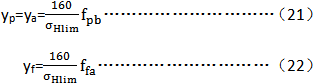 fpbeff、fpaeff——分別為有效基圓齒距偏差和有效齒廓形狀偏差,μm;fpbeff和fpaeff為跑合后的值,根據(jù)相應(yīng)的跑合量yp和yf(μm)確定: