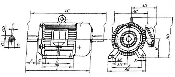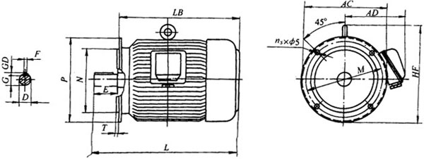 YT-H系列船用風(fēng)機(jī)用三相異步電動(dòng)機(jī)外形及安裝尺寸 |