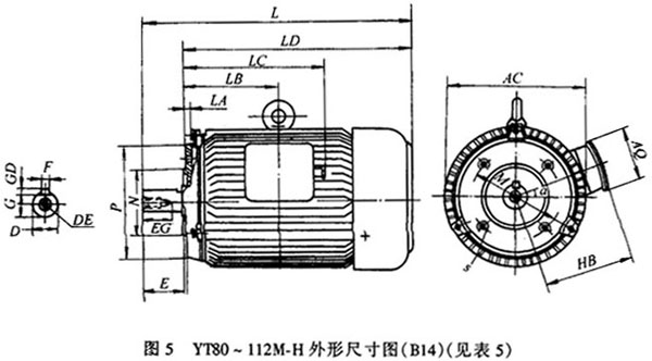 圖4 YT80~112M-H外形尺寸圖(B5)(見(jiàn)表4)