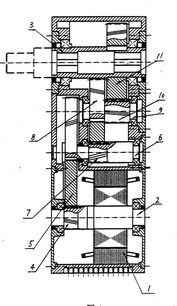 | 一種整體式電機(jī)減速機(jī),其特征在于:在箱體內(nèi)裝有電機(jī)(1)及傳動(dòng)裝置,電機(jī)軸(2)上安裝有第一級(jí)傳動(dòng)部件,輸出軸(3)上裝有最后一級(jí)的傳動(dòng)部件,通過輪系傳動(dòng)系統(tǒng),將電機(jī)軸(2)的轉(zhuǎn)速和轉(zhuǎn)矩傳遞給輸出軸(3)。 |