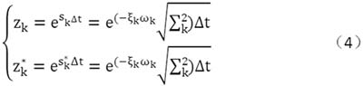求解得到的根為傳遞函數(shù)的極點,他們與系統(tǒng)的模態(tài)頻率ωk和阻尼比的關(guān)系為: