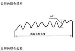 安裝好的齒條副,在工作長(zhǎng)度內(nèi),齒條沿分度線平移的實(shí)際值與公稱值之差的總幅度值 |