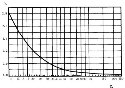 螺旋角系數(shù)是考慮螺旋角影響齒面相對曲率半徑,從面影響輪齒應(yīng)力的系數(shù)。其值可按圖5查取,或按圖中公式計算。