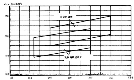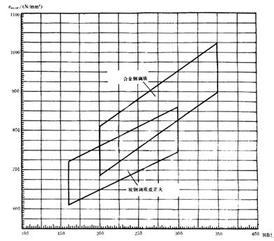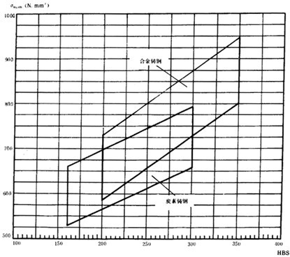疲勞極限是指某種材料的齒輪經(jīng)長期持續(xù)的重復(fù)載荷(接觸應(yīng)力循環(huán)基數(shù)No=5×107,彎曲應(yīng)力循環(huán)基數(shù)No=3×106)作用后,輪齒保持不破壞時的極限應(yīng)力。它可由齒輪的負(fù)荷動轉(zhuǎn)試驗或經(jīng)驗統(tǒng)計數(shù)據(jù)獲得。當(dāng)缺乏資料時,可參考圖10和圖11,根據(jù)材料和齒面硬度取值。鑄鋼、氮化鋼和球墨鑄鐵的疲勞極限見附錄A(補(bǔ)充件)。