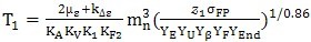 式(B1)與正文的公式(3)等效,其符號意義及取值同公式(3)。σHP應(yīng)取大輪或小輪的小值代入式(B1)。對于人字齒輪,( )按單側(cè)齒寬計,算得的T1值為單側(cè)齒寬的名義轉(zhuǎn)矩。