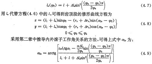 由方程式(2.21)表示的內(nèi)齒圈齒廓是無(wú)側(cè)隙的,即圓周上所有的推桿,不論是否處于工作狀態(tài),都是和內(nèi)齒圈齒廓相接觸的。為了使推桿減速器便于裝拆和保證良好的潤(rùn)滑,實(shí)際的推桿減速器不能采用這種無(wú)隙嚙合的理論齒廓,而應(yīng)采用有隙嚙合的修形齒廓。修形齒廓就是有意識(shí)地將理論齒廓進(jìn)行微量修削后所得到的齒廓。對(duì)齒廓修形除了給嚙合傳動(dòng)留有一定量的間隙外,更重要的是使傳動(dòng)性能得到改善。所以修形齒廓的形狀和參數(shù)是內(nèi)齒圈齒廓加工的一個(gè)重要問(wèn)題。