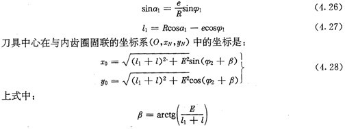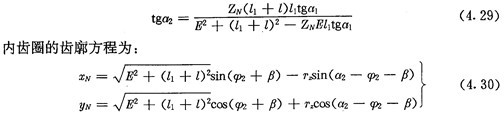 若令(4.30)式和(4.31)式中的E=0,得到的就是無(wú)偏距時(shí)的內(nèi)齒圈齒廓理論方程式(2.21)及公法線長(zhǎng)度(4.18)式。