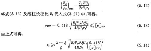 上式為根據(jù)內(nèi)齒圈與外滾子的許用接觸應(yīng)力所確定的激波器半徑的取值范圍。顯然激波器半徑Tb的取值應(yīng)同時(shí)滿足式(5.9)及式(5.14)的要求。