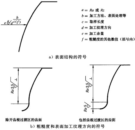 注:表面加工紋理通常是由所用的加工方法決定的。