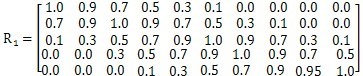 3.確定閾值及其矩陣 閾值即為轉(zhuǎn)折點(diǎn)值,可按某種規(guī)則取得,也可按照經(jīng)驗(yàn)或類比的方法獲得,或直接從角矩陣中獲得相對(duì)閾值,即在象矩陣中尋找最大、最小、中等閾值,方法如下: