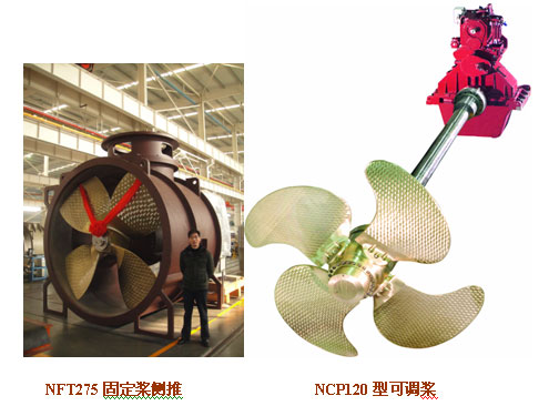 其中NCP120型可調(diào)槳最大傳遞能力為55.4kW/rpm,螺旋槳最大推力達(dá)110t,是目前國(guó)內(nèi)傳遞能力最大,推力最大的可調(diào)槳;NFT275固定槳側(cè)推最大傳遞功率為3000HP,槳葉直徑2750mm,是目前國(guó)內(nèi)生產(chǎn)的規(guī)格最大的側(cè)推;CGS船用齒輪箱具有承載推力大、齒輪承載能力高、穩(wěn)定性好等特點(diǎn),在相同工況下相較傳統(tǒng)產(chǎn)品在選型上可以降低一個(gè)規(guī)格,從而減少了齒輪箱的重量,降低了船廠采購(gòu)成本;CKV可調(diào)槳船用齒輪箱是為可調(diào)槳推進(jìn)系統(tǒng)專(zhuān)配的齒輪箱,可以一個(gè)輸入拖帶二到四個(gè)輸出,具有結(jié)構(gòu)新穎,體積小、性價(jià)比高等特點(diǎn)。
