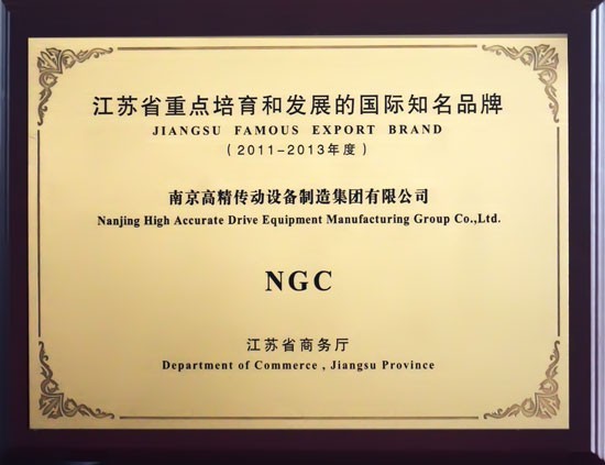 江蘇省商務廳于2011年8月15日上午在南京狀元樓酒店隆重召開全省出口品牌工作會議,省領(lǐng)導、省商務廳及省有關(guān)單位領(lǐng)導為“2011-2013年度江蘇省重點培育和發(fā)展的國際知名品牌”企業(yè)授牌,南京高精傳動設備制造集團有限公司(以下簡稱:南高齒)位列其中。
