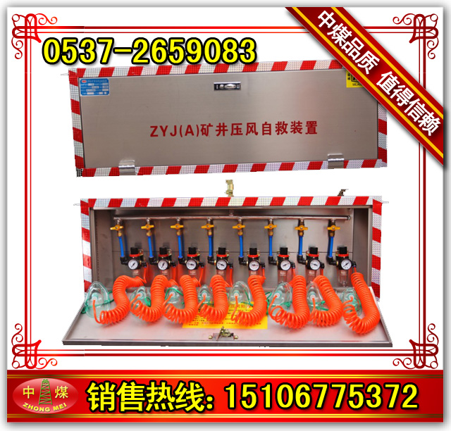 ZYJ(A)礦用壓風自救裝置,為隔絕式防護裝置,當煤礦井下出現(xiàn)煤與瓦斯突出預(yù)兆或突出時,避災(zāi)人員應(yīng)立即跑至壓風自救裝置處,解開披肩防護袋,打開球閥開工,迅速鉆進披肩防護袋,其壓力達0.09Mpa左右,對袋外空氣形成正壓,而袋外有害空氣壓力低,不能進入防護袋,使避災(zāi)人員不致受侵害。披肩防護待材料具有不漏氣、阻燃和抗靜電特點。
