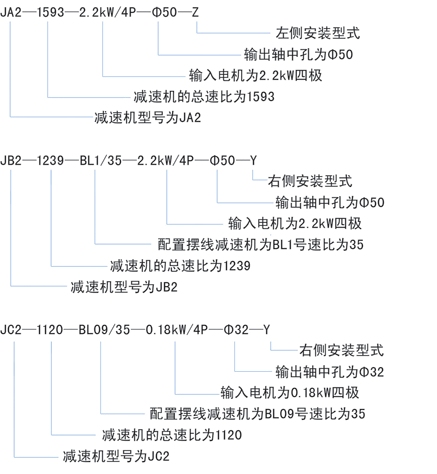 | 當前位置:減速機首頁 >> 產(chǎn)品大全 >> 特種專用減速機 >> JA、JB、JC系列滾輪架專用減速機 >> J系列滾輪架專用減速機型號、規(guī)格及表示方法 |