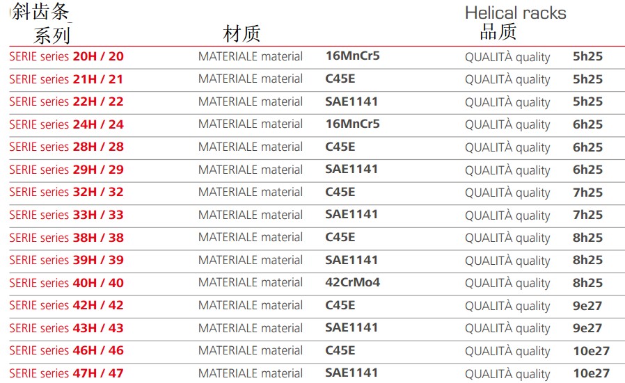 斜齒條模數(shù)M 2 / 3 / 4 / 5 / 6 / 8 / 10 /12
