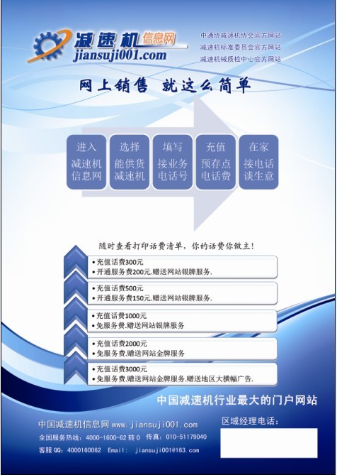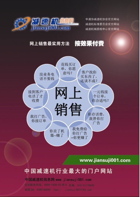 1、在減速機(jī)信息網(wǎng)會(huì)員后臺(tái)填寫你接業(yè)務(wù)的電話號(hào)碼 2、選擇你能銷售的產(chǎn)品。 3、在自己帳戶里充值話費(fèi)。 4、開通網(wǎng)上銷售。 5。在家等業(yè)務(wù)電話,銷售產(chǎn)品。