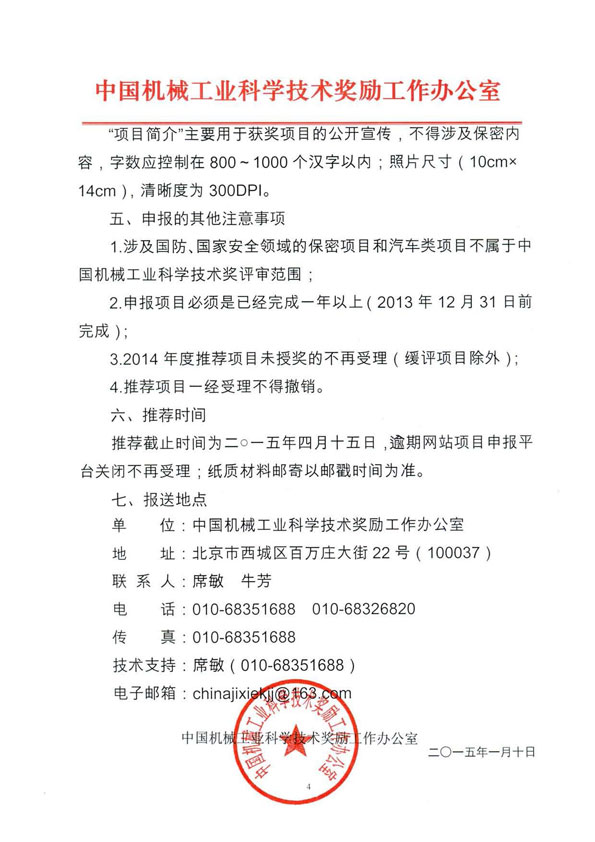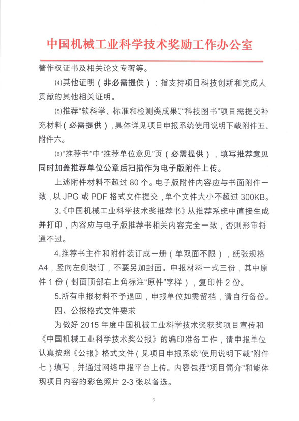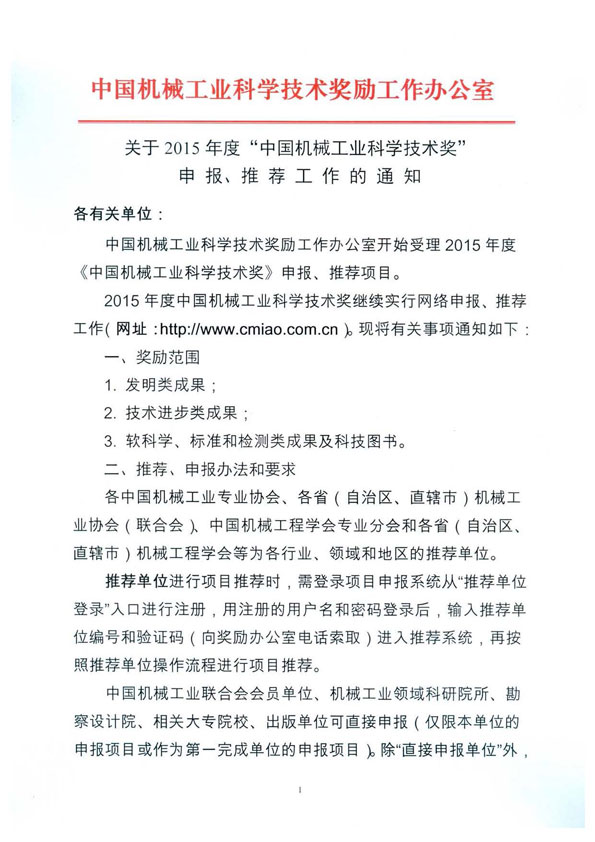 關于2015年度“中國機械工業(yè)科學技術獎”申報、推薦工作的通知