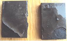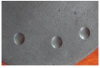 圖1 稀土增強(qiáng)陶瓷涂層2000h腐蝕 圖2 WC30%+Fe陶瓷涂層1500h腐蝕樣品 圖3 CrC陶瓷涂層1500h腐蝕樣品 圖4 4Cr13鋼800h腐蝕樣品 涂層抗變形能力測試結(jié)果如圖5和圖6所示。實驗采用布氏硬度壓痕法,鋼球直徑10mm,載荷1800N,測試樣品經(jīng)1500h腐蝕測試后進(jìn)行壓痕測試。 圖5 稀土增強(qiáng)陶瓷涂層壓痕樣品 圖6 CrC陶瓷涂層樣品 5 展望 在熱噴涂耐磨涂層,尤其在螺桿泵技術(shù)領(lǐng)域的涂層采用真空浸滲技術(shù)封堵涂層缺陷的報道還鮮有報道,且未見成果應(yīng)用。開展這一領(lǐng)域研究,在國內(nèi)具有一定的技術(shù)先進(jìn)性,在螺桿泵行業(yè)也有領(lǐng)先技術(shù)的優(yōu)勢。 寧波鎮(zhèn)海減變速機(jī)公司借助了國防工業(yè)設(shè)備及技術(shù)的先進(jìn)優(yōu)勢,在噴涂技術(shù)途徑上采用了先進(jìn)的超音速火焰噴涂技術(shù)和等離子噴涂技術(shù),獲得了優(yōu)良的涂層質(zhì)量。涂層防腐技術(shù)途徑采用了真空封堵技術(shù)途徑,有效克服了噴涂涂層的制備缺陷,同時也有效地提高了涂層的結(jié)構(gòu)強(qiáng)度。 目前,在涂鍍層上應(yīng)用真空浸滲技術(shù)封堵涂鍍層中的缺陷的已有研究,但進(jìn)展較慢,由于受封堵劑的限制,在納米粒子浸滲劑的領(lǐng)域落后國外。目前兵器行業(yè)某研究所從匈牙利引進(jìn)的真空封堵劑采用了硅酸鹽納米粒子技術(shù),使得鋁、鎂合金微弧氧化層、鋁合金陽極化層的封堵獲得良好效果,使得涂層的耐腐蝕性能成倍獲得提高。同時,在涂層與基體界面的處理上,采用了無裂紋涂鍍層技術(shù),無晶化鍍層處理,有效提高了基體的抗腐蝕性能,使45鋼基體達(dá)到不銹鋼的耐酸堿腐蝕能力,有效增加了涂層的抗腐蝕性能。