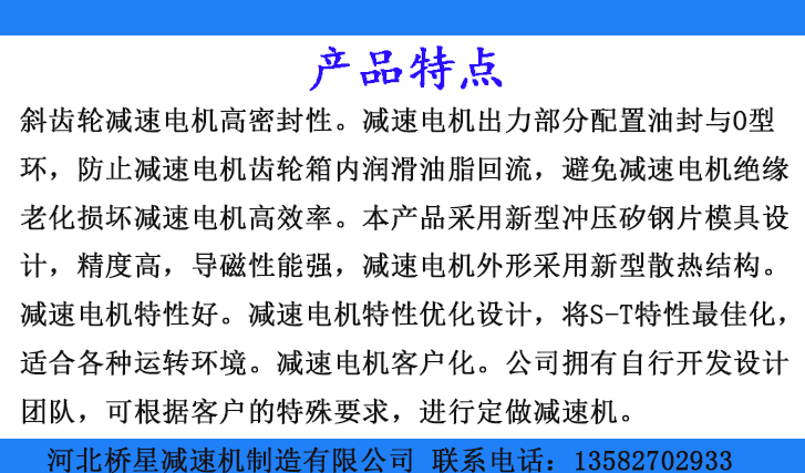2、減速電機(jī)高效率。本產(chǎn)品采用新型沖壓的鋼片模具設(shè)計(jì),精度高,導(dǎo)磁性能強(qiáng),減速電機(jī)外形采用新型散熱結(jié)構(gòu)。