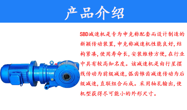 SBD減速機(jī)是專為申克稱配套而設(shè)計(jì)制造的新穎傳動(dòng)裝置,申克稱減速機(jī)性能良好,結(jié)構(gòu)緊湊,使用壽命長,安裝維修方便,在行業(yè)中具有較高知名度。該減速機(jī)是由行星擺線傳動(dòng)為前級減速,弧齒錐齒減速傳動(dòng)為后級減速,直聯(lián)組合而成。采用軸孔輸出,使機(jī)型獲得盡可能小的外形尺寸。