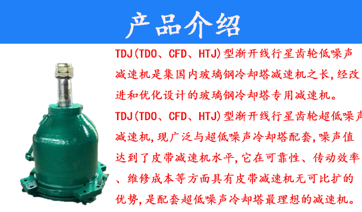 TDU(TDO、CFD、HTJ)型漸開(kāi)線行星齒輪低噪聲減速機(jī)是集國(guó)內(nèi)玻璃鋼冷卻塔減速機(jī)之長(zhǎng),經(jīng)改進(jìn)和優(yōu)化設(shè)計(jì)的玻璃鋼冷卻塔專(zhuān)用減速機(jī)。TD(TDO、CFD、HTJ型漸開(kāi)線行星齒輪超低噪聲減速機(jī),現(xiàn)廣泛與超低噪聲冷卻塔配套,噪聲值達(dá)到了皮帶減速機(jī)水平,它在可靠性、傳動(dòng)效率、維修成本等方面具有皮帶減速機(jī)無(wú)可比擴(kuò)的優(yōu)勢(shì),是配套超低噪聲冷卻塔最理想的減速機(jī)。