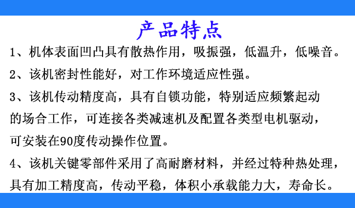 1、機(jī)體表面凹凸具有散熱作用,吸振強(qiáng),低溫升、低噪音。